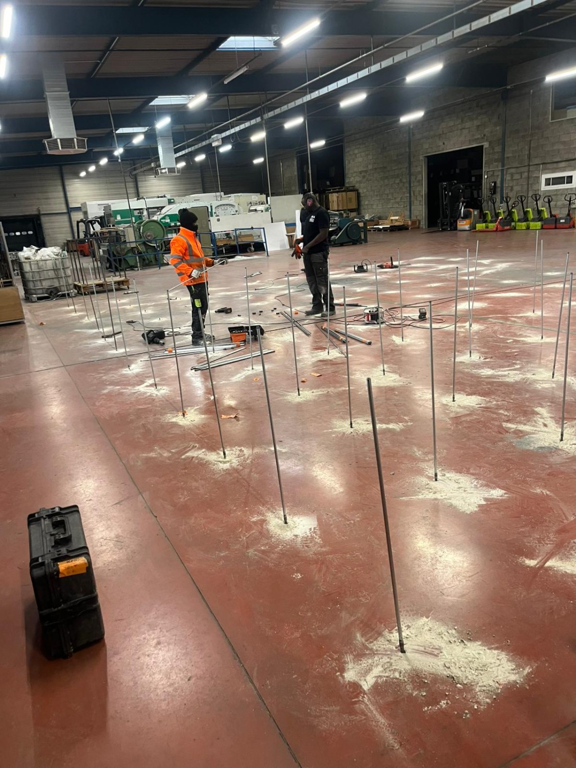 Avant toute opération, une étude de sol approfondie a été réalisée afin de caractériser la nature et l’épaisseur du dallage, les caractéristiques mécaniques des sols sous-jacents ainsi que les zones sensibles nécessitant un renforcement prioritaire. Notre ingénieur géotechnicien a analysé l’ensemble des données recueillies pour définir une solution d’amélioration des sols adaptée aux contraintes du site et aux objectifs de performance attendus.