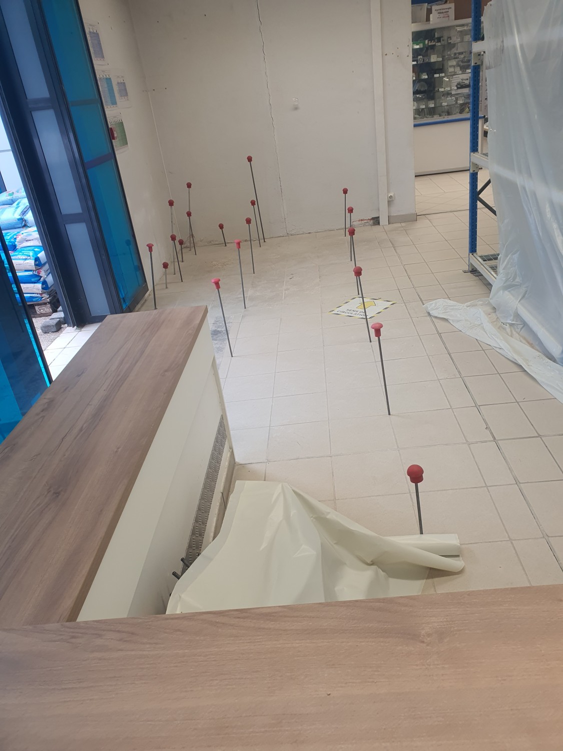 Le 22 avril 2026, nous sommes intervenus sur la commune de Tassin-la-Demi-Lune (69160) dans le cadre d’un chantier de consolidation des sols par injection de résine expansive sur un bâtiment de type commerce. Les désordres observés trouvent principalement leur origine dans des fondations posées sur des remblais hétérogènes à compacités irrégulières, ainsi que dans des désordres affectant la dalle, elle-même reposant sur ces remblais insuffisamment porteurs.